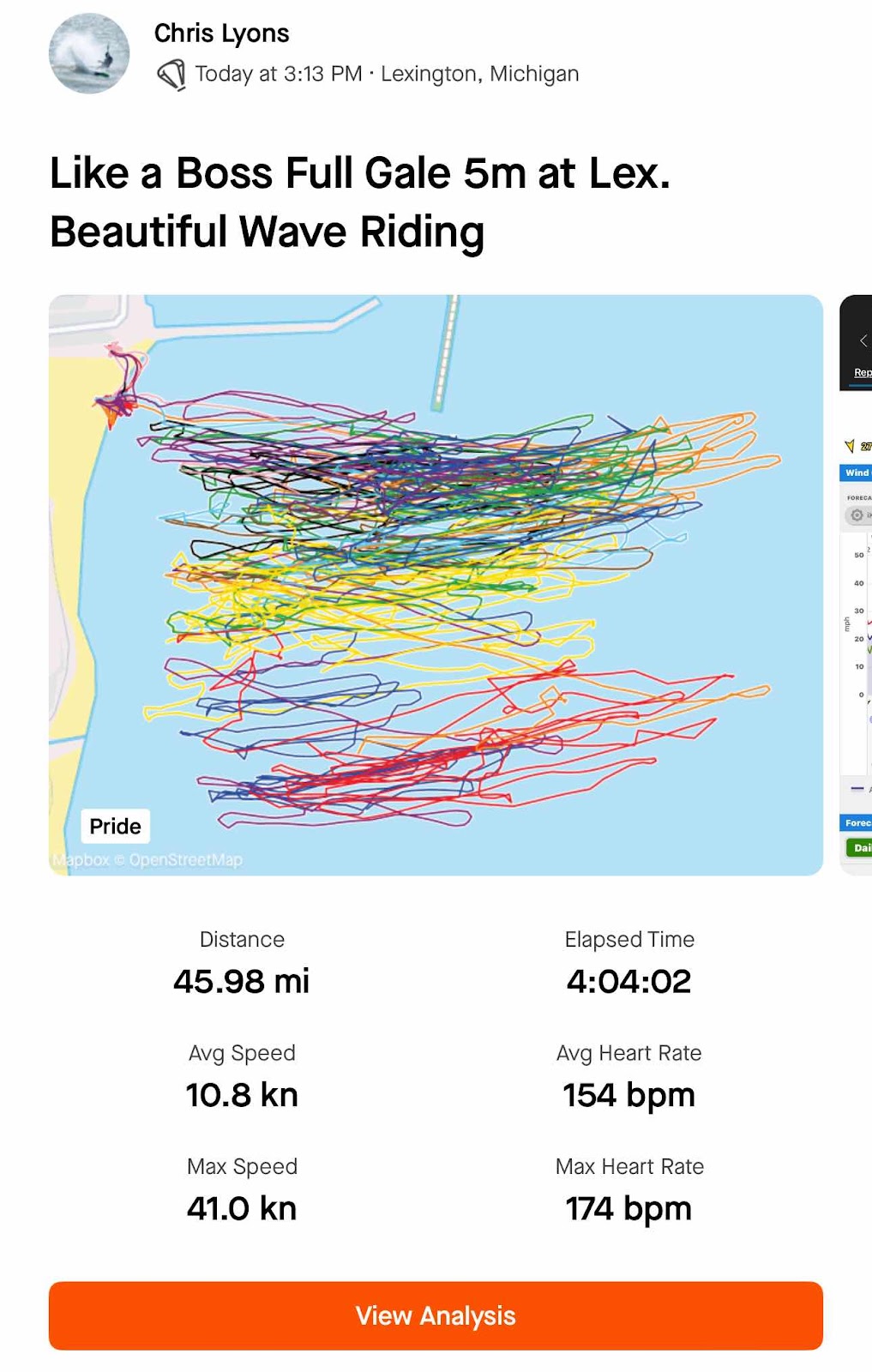An absolute session where you needed a 5 m. I literally had the 7m in my hand standing in the water ready to go and it was pulling me up, completely sheeted out with full downhaul. I was perfect on the 5m North Reach up to 45+ gusts, it was actually a ‘light bar’ feel!